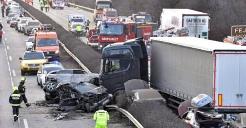 Pelo menos 36 pessoas ficaram hoje feridas, 13 das quais com gravidade, em consequência de um acidente em cadeia numa autoestrada a cerca de 25 quilómetros da Budapeste, capital da Hungria.