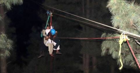 Soldados do exército paquistanês concluíram com sucesso o resgate de oito pessoas, de uma cabine de teleférico que sofreu uma avaria, numa altura aproximada de 300 metros.
