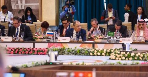 O ministro dos Negócios Estrangeiros da Rússia, Serguei Lavrov, aproveitou a presença no encontro para criticar as sanções adotadas contra Moscovo, por causa da invasão da Ucrânia, alegando que são "ilegais", lamentando os limites "arbitrários" dos preços das matérias-primas ou a "manipulação dos mercados" para prejudicar a Rússia.