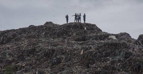 Mulheres e crianças que recolhem resíduos plásticos para obterem alguns rendimentos reúnem-se frequentemente ali e existem algumas casas construídas perto do aterro.