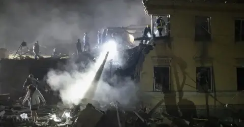 Entre os mortos estão três crianças, disse o ministro do Interior ucraniano, Ihor Klymenko, citando dados preliminares. Espera-se que os números possam aumentar, enquanto as equipas de resgate permanecem no terreno para resgatar as pessoas presas sob os escombros.