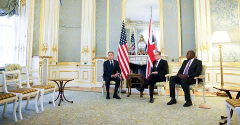 A visita dos chefes das diplomacias de Londres e Washington à capital ucraniana ocorre dois dias antes de uma deslocação do primeiro-ministro britânico, Keir Starmer, aos Estados Unidos, onde se irá avistar com Joe Biden na Casa Branca.