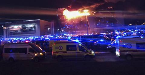 Pelo menos 40 pessoas morreram e mais de uma centena ficou ferida hoje à noite num tiroteio seguido de um incêndio de grandes proporções numa sala de concertos nos arredores de Moscovo, onde vários homens armados entraram, segundo as autoridades russas, que condenaram o que classificaram como “um sangrento atentado terrorista”.