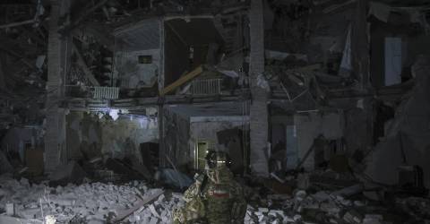O ataque devastou uma casa na cidade de Brovary, a leste de Kiev, matando um casal, informou o serviço de emergência estatal. O corpo da terceira vítima, um homem, foi encontrado num edifício, que foi fortemente danificado por estilhaços de um ‘drone’ na cidade de Glevakha, a sudoeste da capital, disse a mesma fonte.
