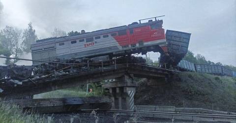 O desmoronamento ocorreu quando a locomotiva de um comboio de mercadorias passou por cima da ponte e se incendiou, disse o governador de Kursk, Alexandr Khinshtein, citado pela agência de notícias espanhola EFE.