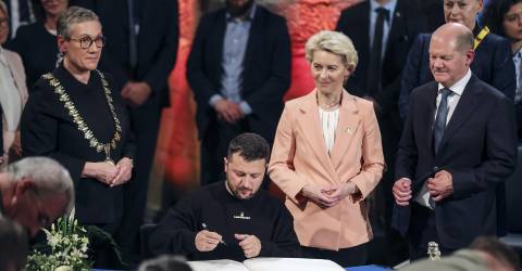 “Nós, a comunidade internacional, temos de nos unir para apoiar a Ucrânia na sua busca da paz. E é assim que abrimos o caminho para restaurar a paz e a segurança internacionais. A nossa tarefa comum é reafirmar a primazia da Carta das Nações Unidas”, concluiu a dirigente alemã, que espera ser reconduzida na presidência da Comissão para um novo mandato de cinco anos, na sequência das eleições europeias realizadas este mês.