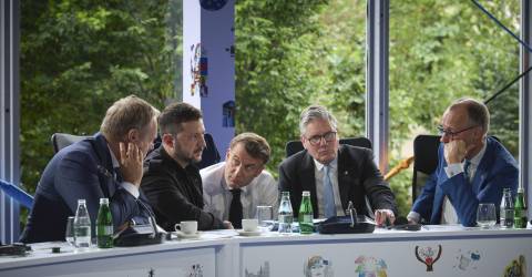 “Acabámos de ter uma reunião com o Presidente Zelensky e depois um telefonema com o Presidente Trump para discutir os desenvolvimentos das negociações hoje, e a posição russa é claramente inaceitável”, comentou Starmer aos jornalistas.