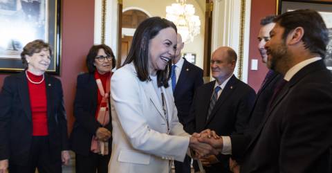 Após o encontro, a venezuelana cumprimentou apoiantes e seguiu para o Capitólio, onde se reunião com membros do Congresso.