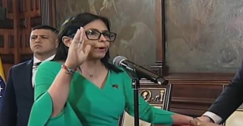 “É com pesar que aqui estou, pelo rapto de dois heróis que estão reféns nos Estados Unidos [Maduro e a mulher, Cilia Flores] (...) Tenho também a honra de prestar juramento em nome de todos os venezuelanos”, declarou Delcy Rodríguez, vice-presidente executiva de Maduro e primeira na linha de sucessão presidencial.