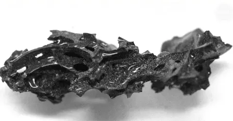 Os investigadores acreditam que os ossos do crânio e da coluna vertebral do indivíduo protegeram o cérebro da decomposição térmica completa, permitindo a formação destes fragmentos de vidro orgânico únicos.