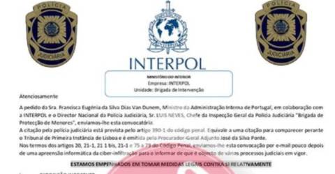 "Circula na internet e em várias plataformas de correio eletrónico, uma mensagem que usando abusivamente os logótipos da Policia Judiciária e da Interpol, bem como o nome do Sr. Diretor Nacional da PJ e outras entidades ligadas à justiça, simula uma pretensa convocação. Esta mensagem é falsa, está inserida numa campanha de "phishing", e constitui, ela sim, uma quebra de segurança para os utilizadores da Internet e do correio eletrónico", lê-se no comunicado da PJ.