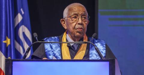 Pedro Pires falava após receber o doutoramento “honoris causa” do ISCTE, em Lisboa, com a investigadora e especialista em inteligência artificial Manuela Veloso.