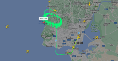 O avião está a largar combustível sobre a zona de Mafra para tentar uma aterragem de emergência no aeroporto de Lisboa.