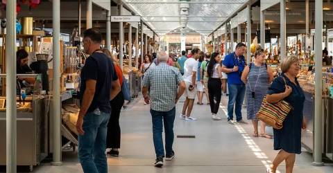 Neste momento, 77 bancas, sete restaurantes e 28 lojas exteriores estão em pleno funcionamento.