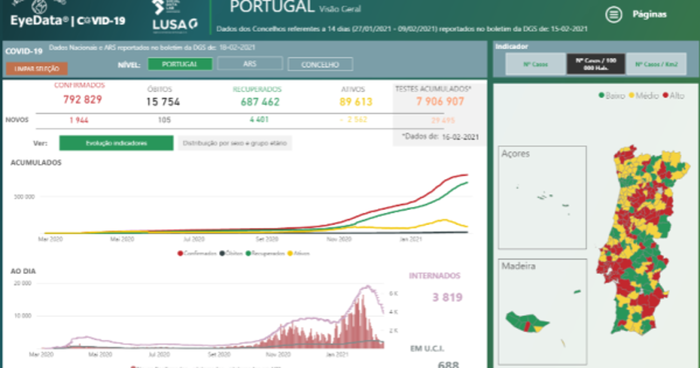 A plataforma de dados estatísticos Eyedata tem a partir de hoje uma nova página em que se cruzam dados da pandemia da covid-19 com variáveis sociodemográficas de cada país do mundo e de Portugal e dos seus municípios.