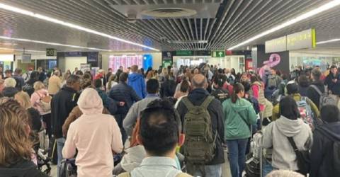 O Aeroporto Humberto Delgado, em Lisboa, está apinhado de passageiros à espera da regularização de voos cancelados ou atrasados por motivo da greve dos tripulantes de cabine da easyJet.