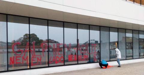 A mesma fonte referiu que o alerta chegou pelas 07:14 e que “terão sido cerca de 10 pessoas” a vandalizar a fachada do edifício.