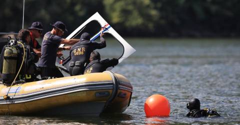 Recordamos que a retirada do helicóptero que caiu ao rio Douro, Lamego, na sexta-feira, iniciou-se esta manhã, por intermédio de uma embarcação com grua.