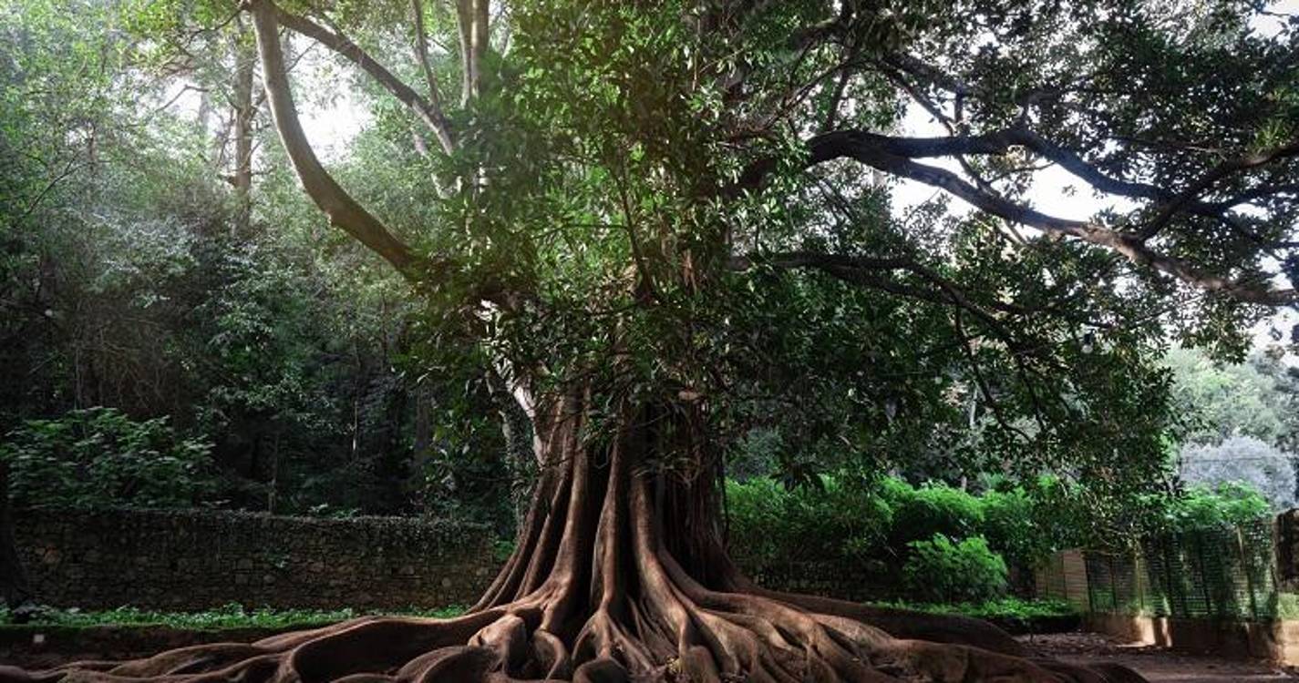 A figueira, com cerca de 150 anos, é uma árvore australiana, com 35 metros de altura, 15 de perímetro de tronco e aproximadamente 40 de diâmetro de copa.