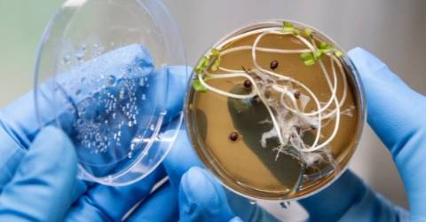 Numa sala pequena, onde predominam máquinas, tubos de ensaio e microscópios, pode ver-se, num espaço reservado e só possível de ser manipulado pelos investigadores devidamente equipados, pequenos tubos com ainda mais pequenas plantas no seu interior e discos de vidro com os probióticos.