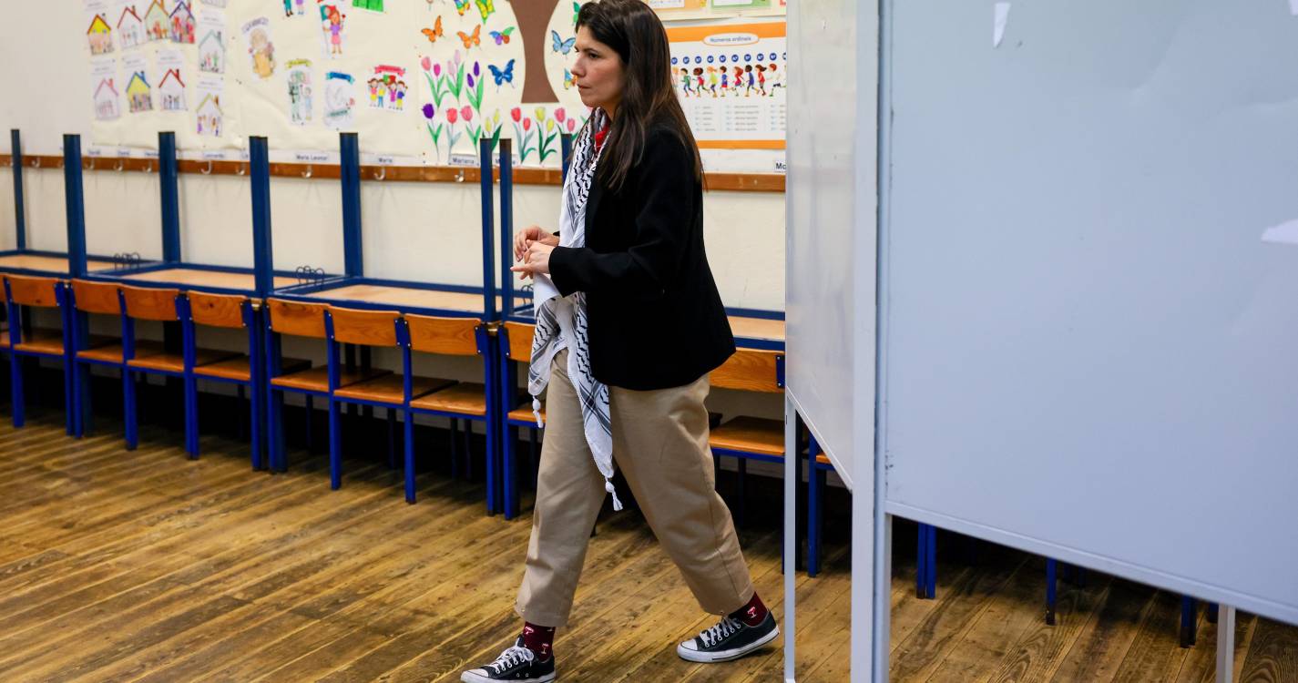 A coordenadora do BE chegou por volta das 11:30 a esta escola, local onde exerceu o seu direito ao voto com um ‘keffiyeh’ aos ombros, um lenço com um padrão xadrez preto e branco, símbolo da causa palestiniana.