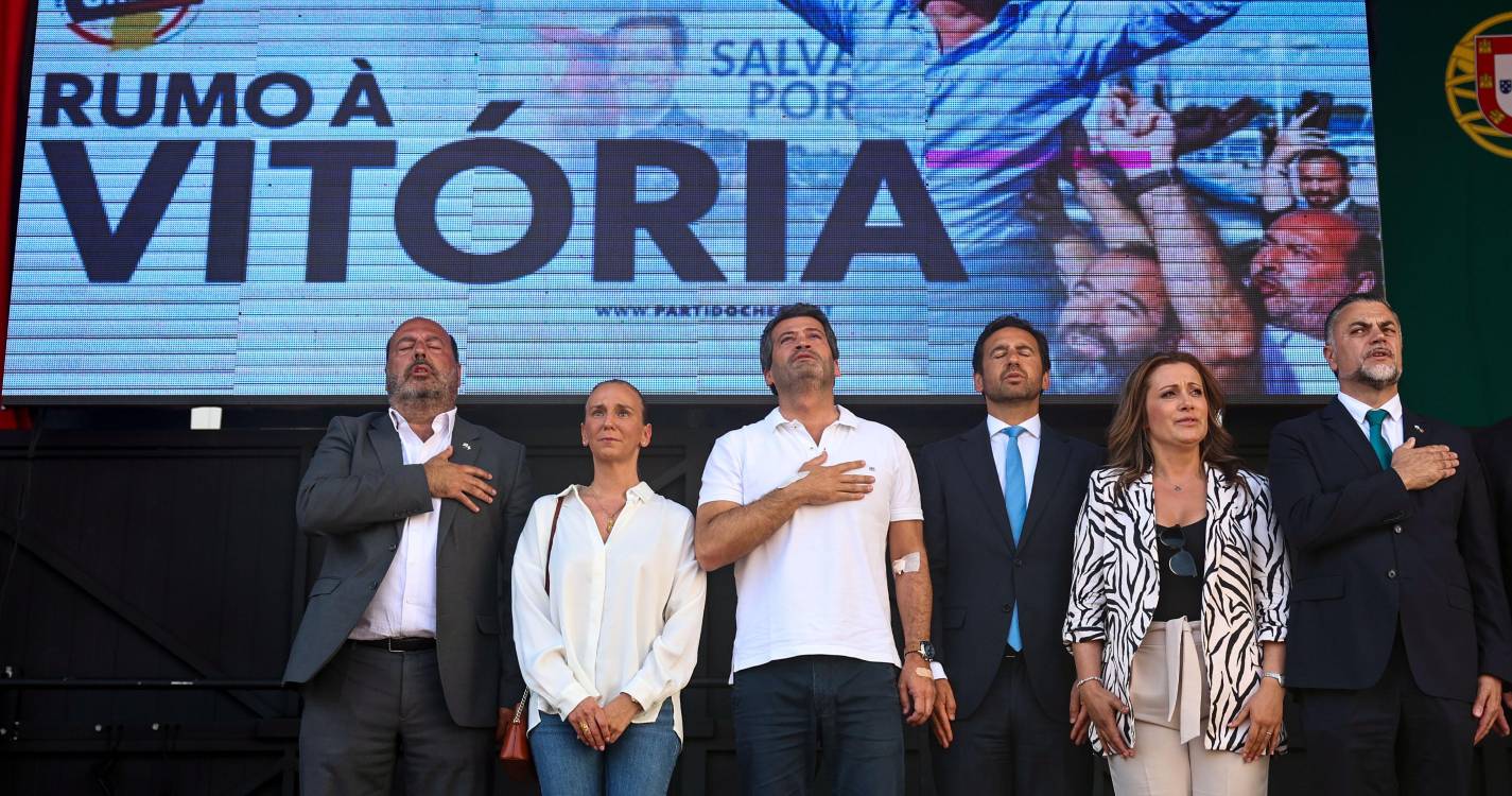 O Chega fez hoje a habitual descida na zona do Chiado, em Lisboa, sem o líder, uma arruada que durou cerca de meia hora, com algumas centenas de apoiantes.