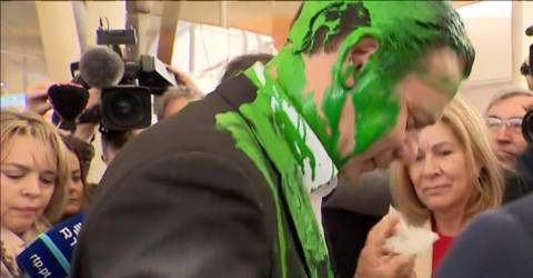 O presidente do PSD foi atingido com tinta verde na cabeça atirada por um ativista.