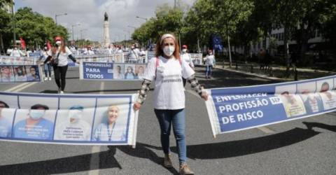 A iniciativa foi promovida pelo Sindicato dos Enfermeiros Portugueses (SEP) para assinalar o Dia Internacional do Enfermeiro e apelar para a “justa valorização” destes profissionais, como se podia ler ao longo da Avenida da Liberdade em várias faixas seguradas pelos enfermeiros, com inscrições como “antigo na profissão, mas ‘novo’ no salário”, “prémios covid-19 são discriminatórios”, “reconhecer a formação de especialista” ou “carreira única”.