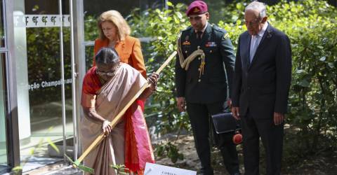 O chefe de Estado português assistiu às intervenções dos cientistas e às respostas de Droupadi Murmu, feitas em hindi, e no fim deixou algumas palavras, em inglês, à sua homóloga, manifestando-lhe gratidão e alegria pela sua visita a Portugal.