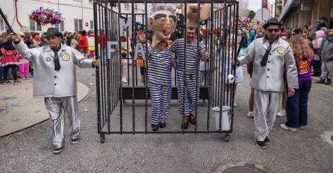 “Os ideais que a revolução nos trouxe não estão tão vigorosos, não estão tão presentes quanto isso e nós quisemos retratar isso numa brincadeira satírica para o nosso carnaval”, explica à agência Lusa o autor e construtor Hélder Silva.