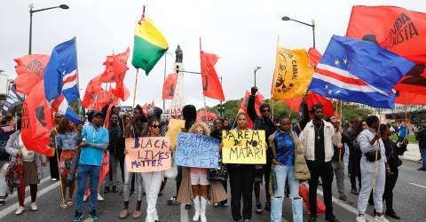 Preenchem a Avenida da Liberdade várias bandeiras do movimento Vida Justa, que convocou a manifestação, assim como de Cabo Verde (país de origem de Odair Moniz), com os manifestantes a entoar gritos de protesto, sendo a principal palavra de ordem “justiça para o Odair”.
