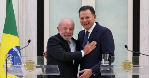 Luís Montenegro falava ao lado do Presidente do Brasil, Lula da Silva, após um encontro entre os dois de cerca de uma hora na residência oficial do primeiro-ministro português.