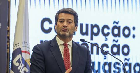 André Ventura falava aos jornalistas antes de uma visita ao Instituto Politécnico de Leiria, no final das jornadas parlamentares do partido, que foram focadas no tema da corrupção.