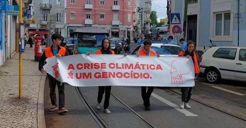 Os ativistas participavam numa marcha lenta “de resistência climática” na Calçada do Combro, em Lisboa, e que dizem ter sido comunicada às autoridades.