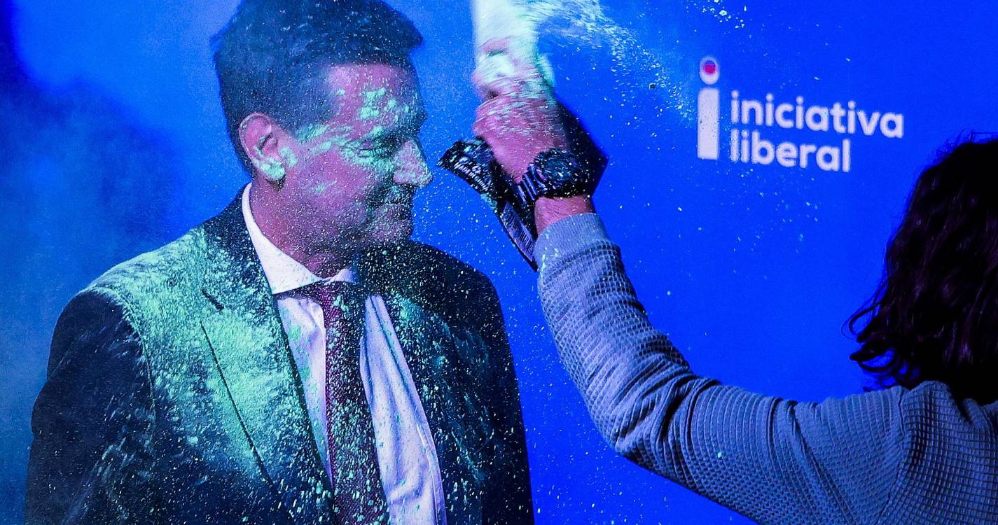 O líder da IL, Rui Rocha, foi hoje atingido com pó verde durante um comício em Lisboa, por dois ativistas que apareceram no palco onde discursava com um cartaz contra os combustíveis fósseis.