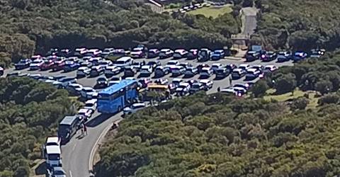 Ao longo da estrada, já se encontram vários carros estacionados nas bermas, dificultando também a circulação na via.