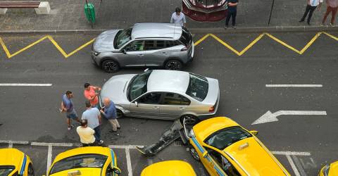 Aconteceu esta manhã um choque entre duas viaturas ligeiras, uma delas um táxi, na zona do Almirante Reis, no Funchal.