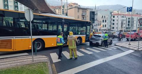 Um acidente entre um automóvel ligeiro e um autocarro dos Horários do Funchal na Rua 5 de Outubro, no centro do Funchal, está a gerar algum aparato.
