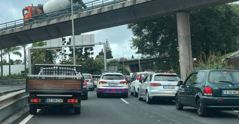 Uma viatura da Polícia abriu caminho entre as duas faixas de rodagem, como acontece com frequência em casos semelhantes.