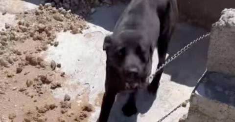 A Associação Ajuda a Alimentar Cães resgatou uma cadela que vivia “acorrentada ao varão de uma escada, sem qualquer tipo de abrigo” e “em cima das próprias fezes”.