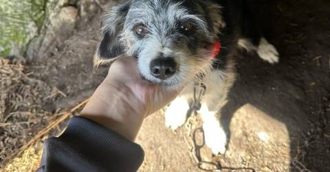 A Associação ‘Ajuda a Alimentar Cães’ informa ter resgatado um cão, que encontraram sozinho há um mês e que, alegadamente, de acordo com discrição da associação, estava a destruir algumas fazendas.