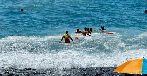 Testemunhas oculares dão conta de que, esta tarde, três nadadores salvadores tiveram de entrar no mar para socorrer algumas pessoas, alegadamente na sua maioria turistas com crianças.