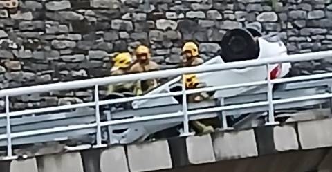 Um veículo despistou-se e capotou esta manhã após o túnel do Campo da Barca, no Funchal, causando grande aparato no local.