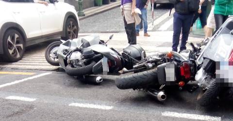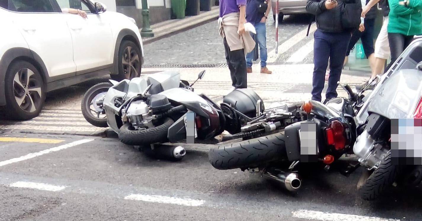 Um carro abalroou, esta tarde, várias motas que se encontravam parqueadas na Avenida Arriaga, junto à Loja do Cidadão.