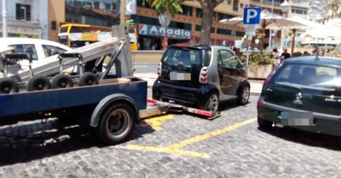 Uma viatura ligeira, sem dístico, encontrava-se, esta tarde, estacionada num lugar destinado a portadores de deficiência, junto ao Mercado dos Lavradores, no Funchal.