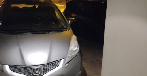 Trata-se de uma viatura Honda Jazz, cinza, do ano de 2009