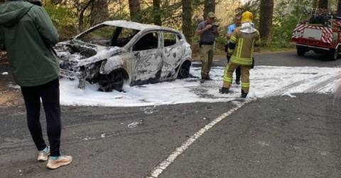 Esta manhã, os ocupantes de uma viatura de uma rent-a-acar não ganharam para o susto, quando o veículo se incendiou, na descida do Poiso para o Ribeiro Frio.