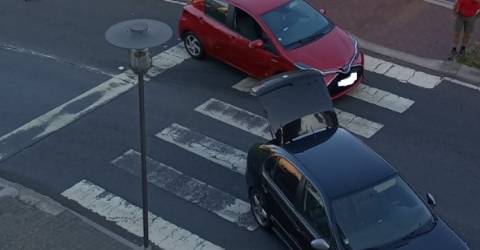 Duas viaturas ligeiras colidiram, esta manhã, numa das saídas da rotunda da Assicom, na Estrada Monumental, no Funchal.