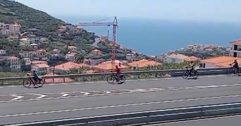 Está a circular nas redes sociais um vídeo que mostra um grupo de quatro ciclistas a transitar na Via Rápida, no sentido Ribeira Brava – Funchal, mais precisamente entre o nó da Quinta Grande e o nó de Câmara de Lobos. O incidente terá ocorrido no início da tarde da passada segunda-feira.