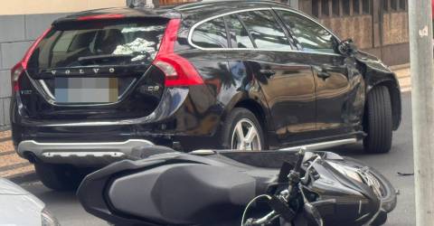 Ocorreu, há instantes, uma colisão entre um veículo ligeiro de passageiros e uma mota.